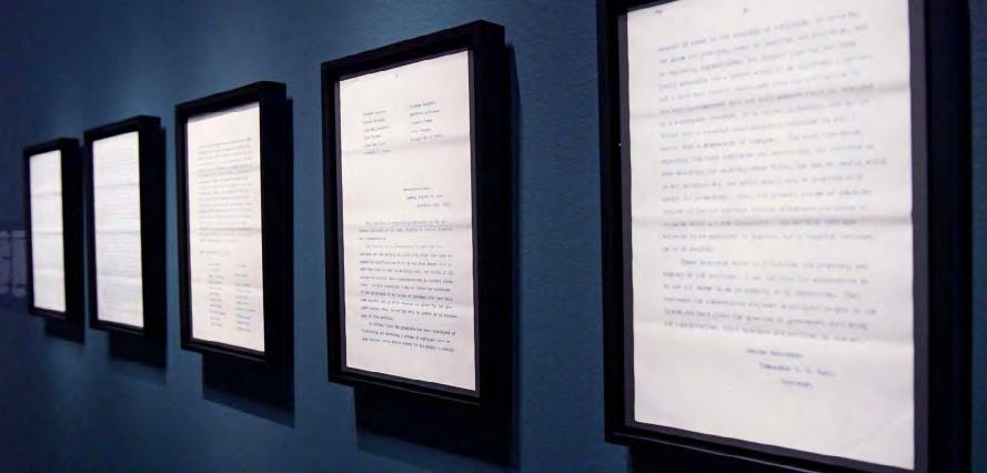 Cuadros con documentos de las peticiones de la isla de Guam.