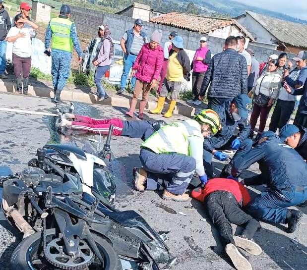 Dos personas estaban heri das sobre la calzada, ya que se habrían chocado con la moto en la que se movilizaban con tra un carro.