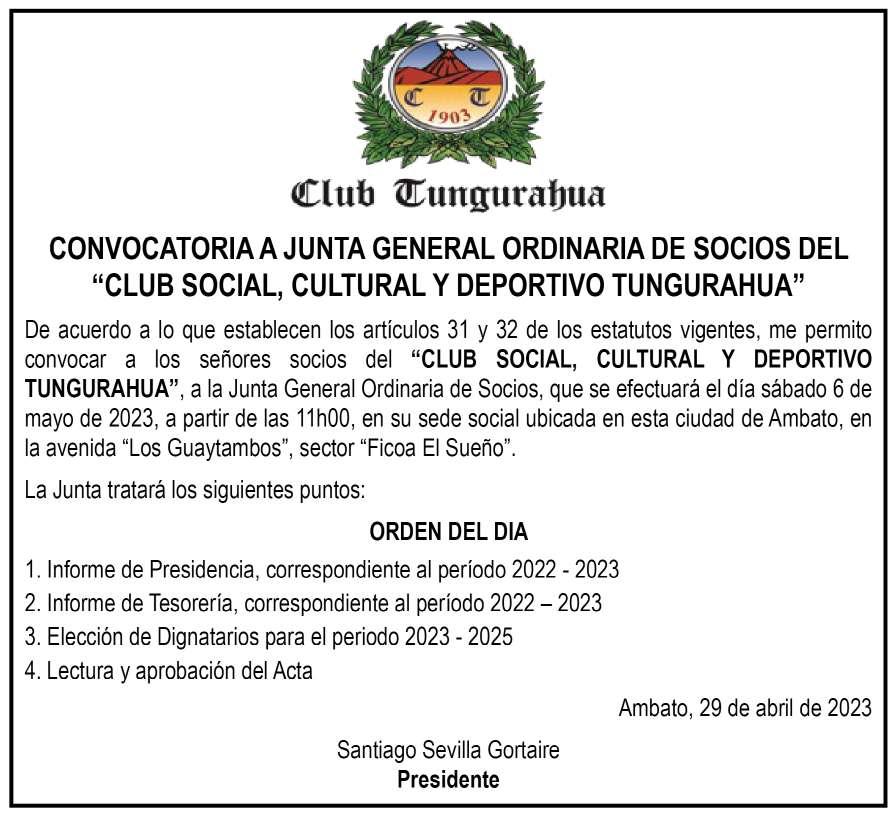 TUNGURAHUA DOMINGO 30 DE ABRIL DE 2023