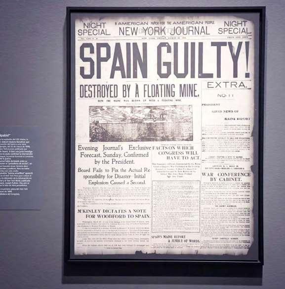 Un reproducción de la primera plana del periódico New York Journal del 25 de marzo de 1898 con el título ‘¡España culpable!’.