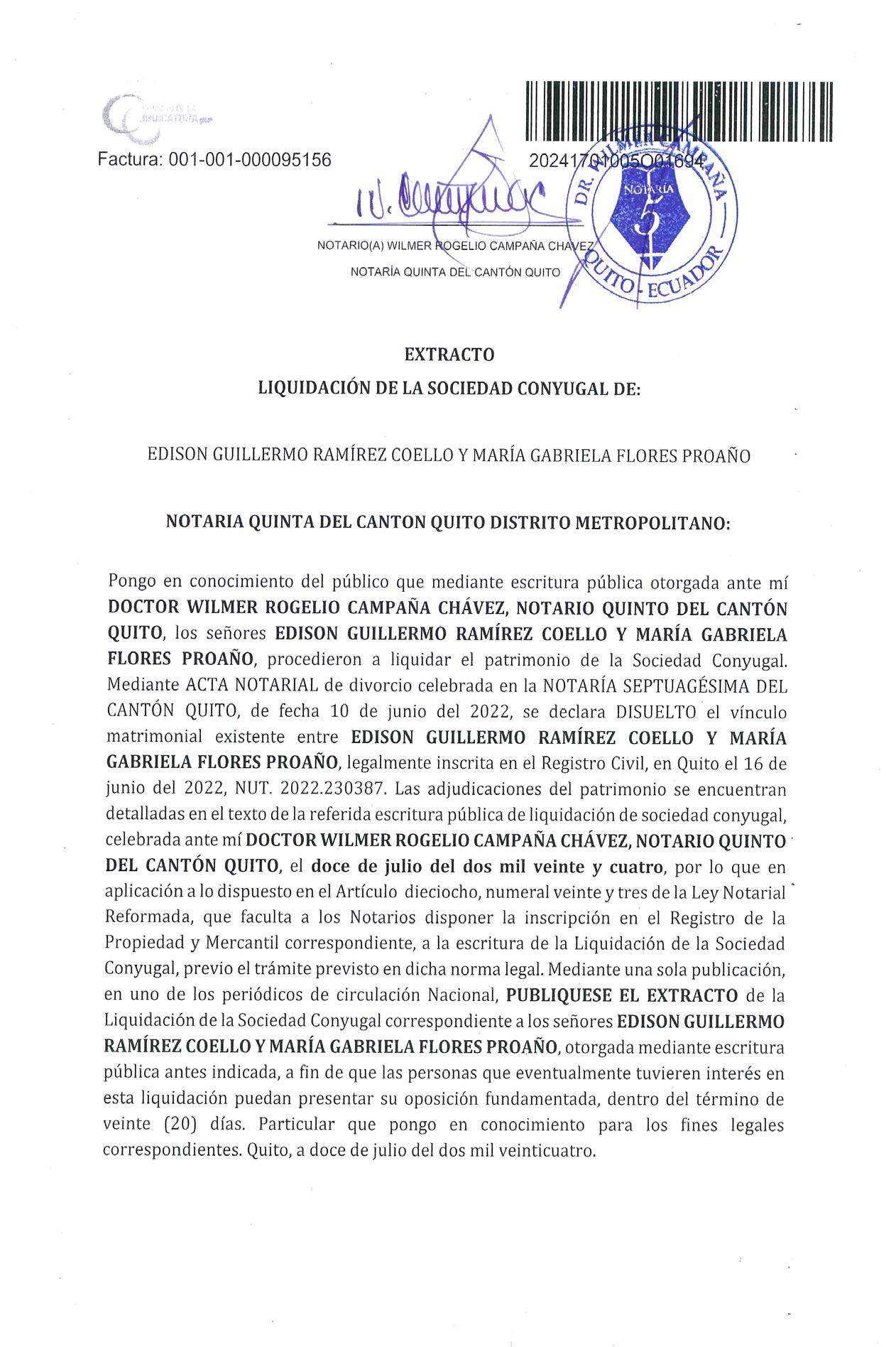 5. La Junta se reunirá, en segunda convocatoria, con el número de accionistas presentes. Quito, 30 de julio de 2024