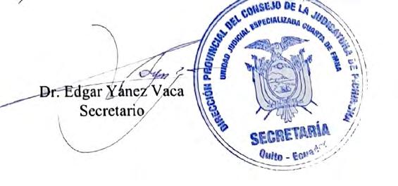 ABOGADA SECRETARIA: Ab. Gabriela Susana Bedón Garzón – 0998323411