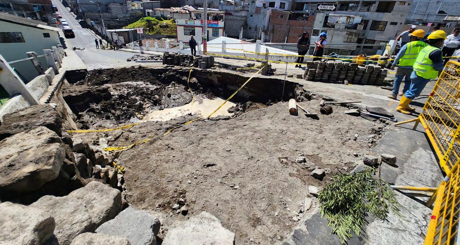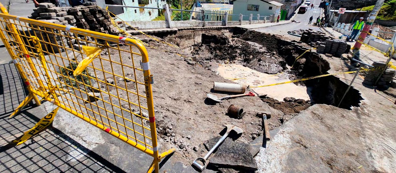 Esta vía que se hundió por primera vez el 15 de marzo de 2023 y 27 después, el 11 de abril, volvió a colapsar. Actualmente está inhabilitado el paso debido a las intervenciones que personal de la Empresa Municipal de Agua Potable y Alcantarillado (Emapa) realiza en el lugar.