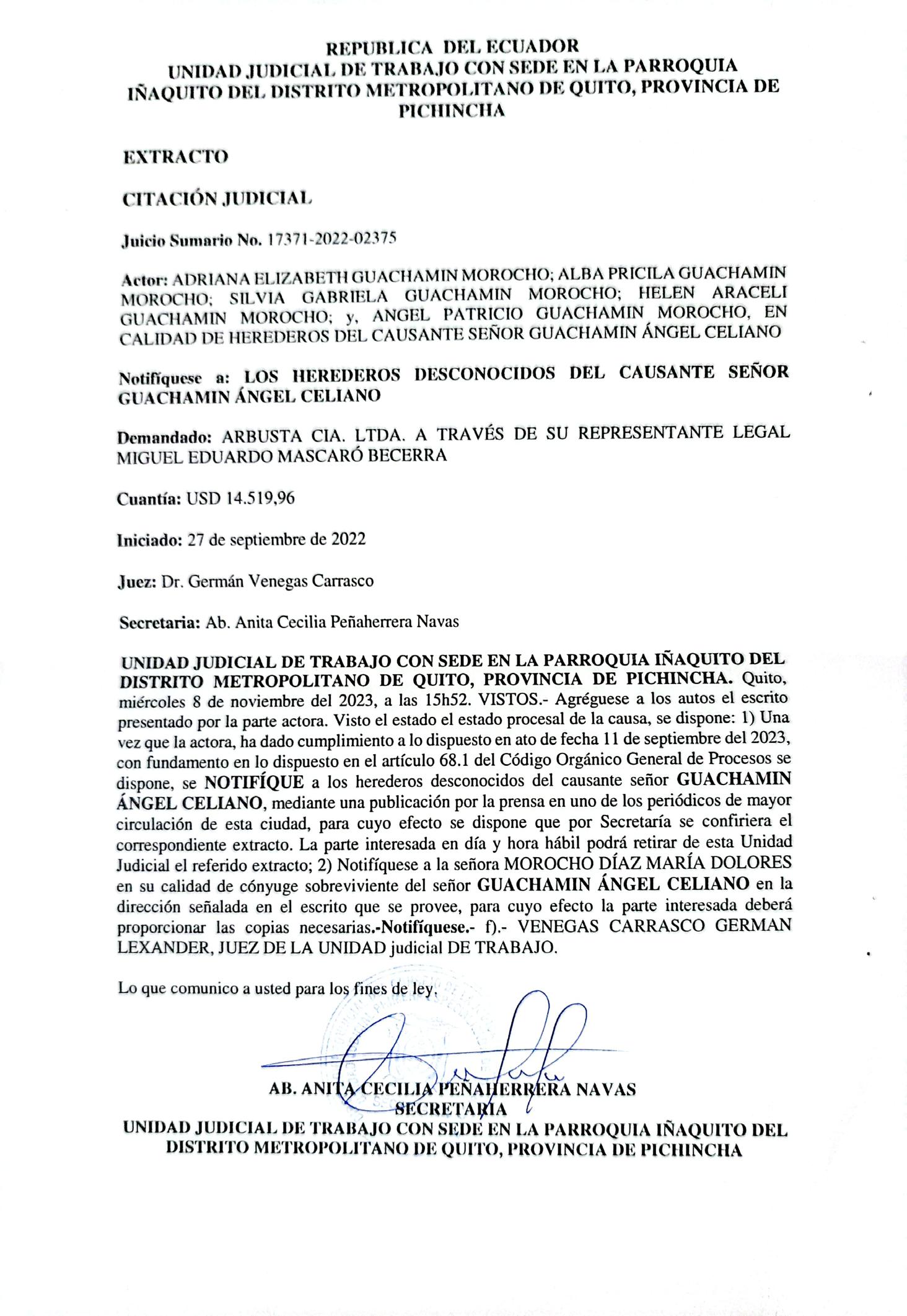 UNIDAD JUDICIAL CIVIL CON SEDE EN EL CANTÓN RUMIÑAHUI, PROVINCIA DE PICHINCHA, Rumiñahui, viernes 22 de diciembre del 2023, a las 08h12.