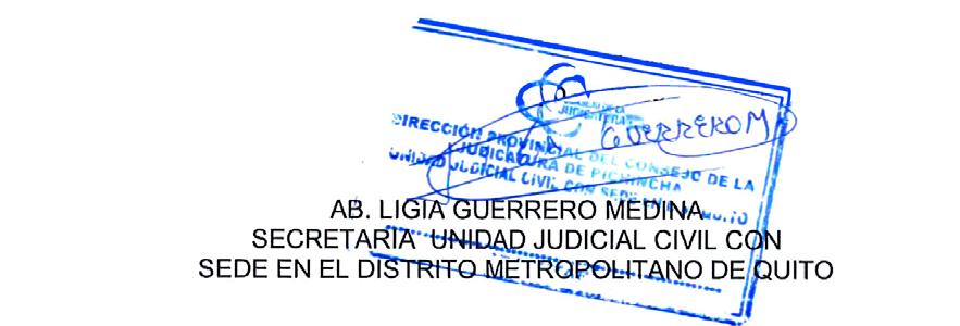 Lo que les comunico y cito para los fines de Ley, previniéndoles de la obligación de señalar Casillero Judicial y/o correo electrónico en esta ciudad de Quito a fin de recibir posteriores notificaciones en la presente causa.