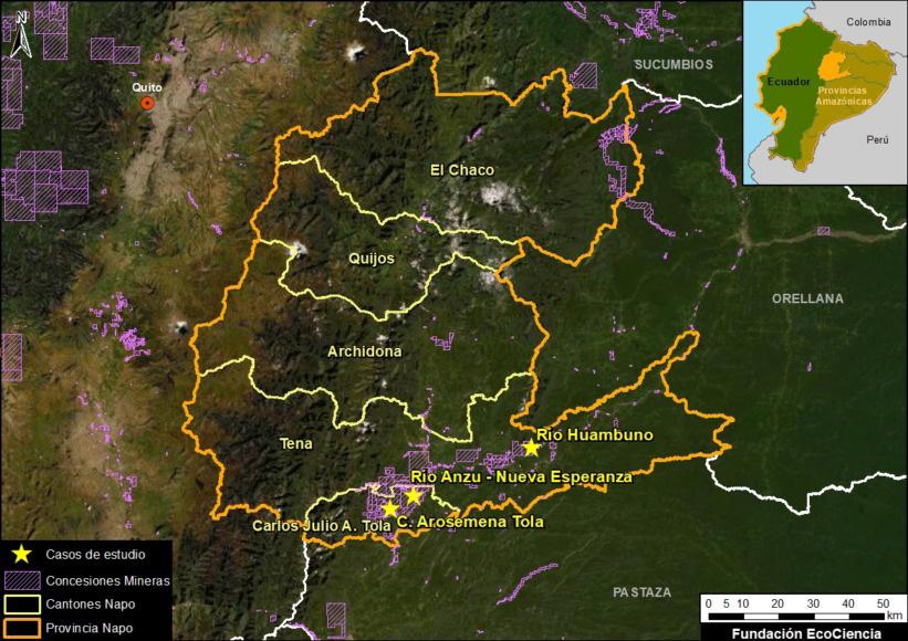 REGISTRO. Mapa base de la minería en la provincia de Napo. Foto: EcoCiencia.