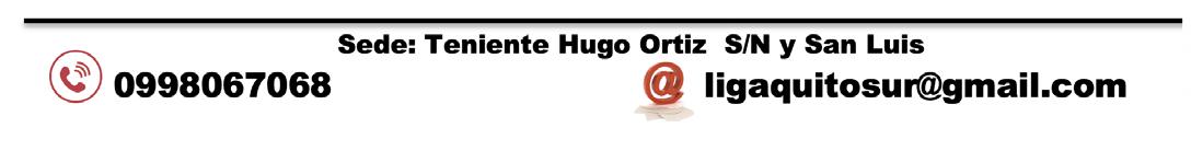 Por medio de la presente, de conformidad con las disposiciones estatutarias del Acuerdo Ministerial Nro. 0153 de fecha 2011-10-28, amparados en lo que dispone el estatuto en el capítulo II del Directorio, artículos 28 y 29 y de la Asamblea General, artículo 26. Se convoca a la Asamblea General de Elecciones de la LIGA DEPORTIVA BARRIAL “QUITO SUR”, en la cual se elegirá al nuevo directorio de la Institución PARA EL PERIODO 2023-2027 el día 18 de abril de 2023 a las 19H30 en la sede de la Liga ubicada en la Av. Teniente Hugo Ortiz S/N y pasaje San Luis, redondel del Calzado, de la ciudad de Quito, con el siguiente orden del día: