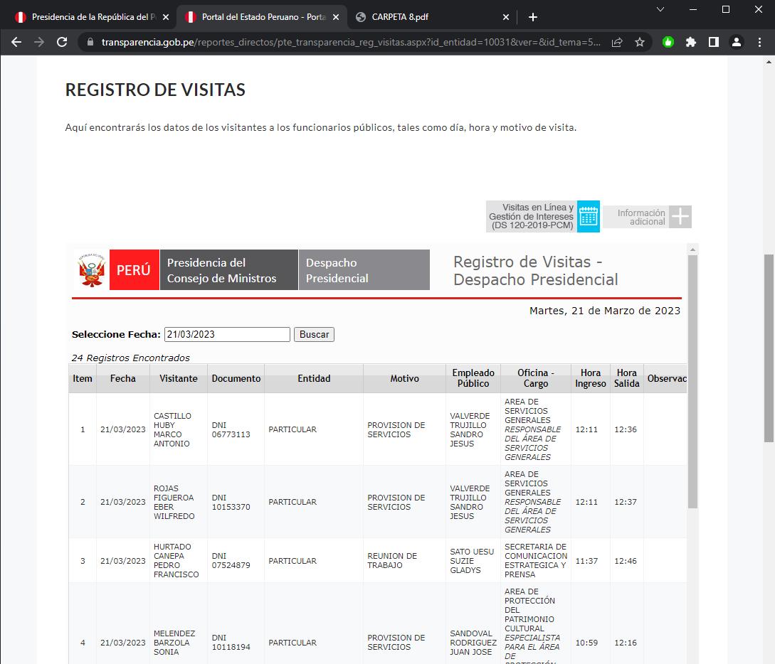 La entrega de 1.300 páginas del libro de visitas a la Presidencia revive el debate sobre la transparencia. Perú tiene leyes que exponen, en tiempo real, las visitas a todas las autoridades.