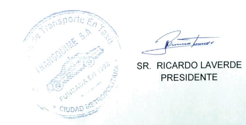 A JUNTA GENERAL ORDINARIA DE ACCIONISTAS DE LA COMPAÑÍA SERVICIOS DE TRANSPORTE EN TAXIS CIUDAD METROPOLITANA TRANSQUIME S.A.