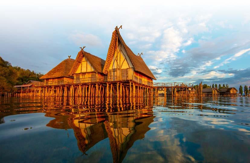 Nahrungsquelle und Schutzraum zugleich. Heute zeugen die Pfahlbauten Unteruhldingen von ihrer frühen Zivilisation vor 10.000 Jahren.