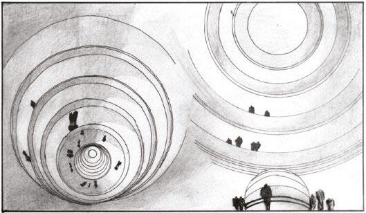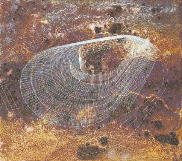 w h o s e v i o l e n t, s y n c o p a t e d , a n d c o n t r a d i c t o r y t e m p o r a l i t y i s m a t e r i a l i z e d i n a n d a s s p a c e . D o w n w a r d S p i r a l d o e s a m a r v e l o u s j o b o f t a k i n g u s i n t o t h i s v o r t e x, p e r h a p s n o w h e r e a s e m b l e m a t i c a l l y s e t i n s t o n e a s a t E l H e l i c o i d e .
