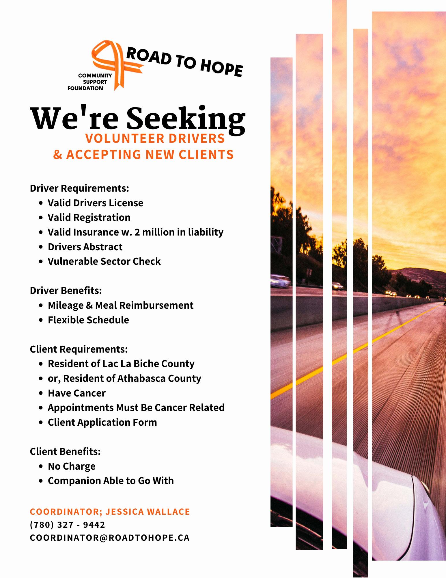 new Medical Transportation Grant for travel outside of Lac La Biche County for medical appointments. Contact FCSS for info 780-623-6745