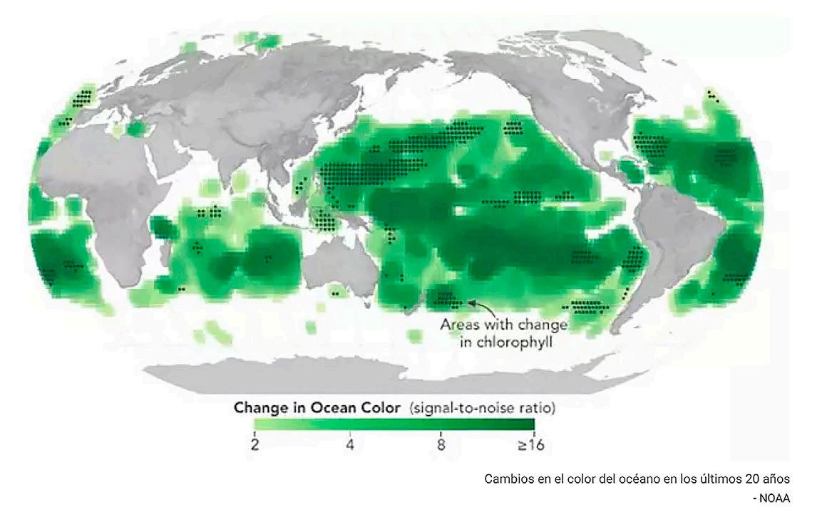 En los últimos 20 años el 56% de la superfi cie marina mundial ha experimentado un cambio de color