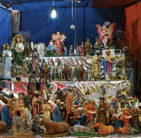 to instalado en la cochera de la casa de Sierra Nevada. Una bóveda celestial, decorada por Gerardo Murillo, envolvía el paisaje de minúsculas arboledas, riachuelos y el sencillísimo pesebre devenido en portal con ángeles en el remate, con cometa en la altura, todo en escala infantil.