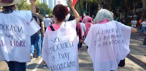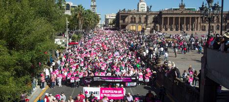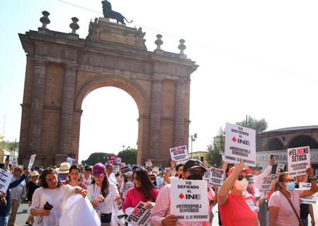 Unidad. Las marchas de ayer en defensa del INE en las principales ciudades del país –63 dicen los convocantes-- sorprendieron por su elevado nivel de participación. El grito “¡El INE no se toca!” fue escuchado en las calles tomadas por cientos de miles de ciudadanos. “Diputados, senadores, ¡México está en sus manos!”, expresaban los participantes en sus consignas. PÁG 8 entre quienes había muchos adultos, vestía de rosa o llevaba una prenda de ese color.