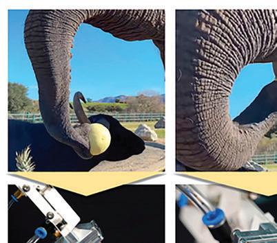 El Instituto de Maquinaria y Materiales de Corea (KIMM), una institución bajo la jurisdicción del Ministerio de Ciencia y TIC, anunció que ha desarrollado la primera pinza del mundo capaz de todos los movimientos de agarre, inspirada en trompas de elefante. Específicamente, imita cómo los elefantes recogen objetos pequeños pellizcándolos con la punta de sus trompas o agarran objetos grandes aspirando aire profundamente a través de sus trompas.