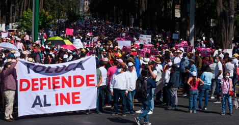 y obtuvieron de respuesta el Zócalo amurallado, pero ahora fue diferente, porque si bien se gritaba tangencialmente contra el gobierno, el coro era más para decir, “el INE no se toca” y “a eso vine, a defender al INE”, pues se trató de un caso extraño, poco frecuente, la defensa de una institución, cuando en la historia de las protestas siempre se quiere la extinción de algo, ya sea un cuerpo policiaco represor (los granaderos, la Montada, etc.); una figura jurídica como aquella de la disolución social o la expulsión de un jefe policiaco, pero en fin, los tiempos cambian y ahora el gobierno ataca al Estado desde la jefatura del Estado, porque el pleito no es nada más contra los cretinos o en favor de los cretinos, la ira va primero contra el INE y después contra quienes lo conforman y lo hacen funcionar, y ya como consecuencia, contra los ciudadanos cuyo apoyo se expresa de muchas formas, la de ayer, una de ellas, la más visible y estridente, por cierto, pues ya lo dijo ayer José Woldenberg, orador non en el Monumento a la Revolución y