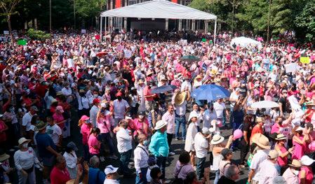 “Va a caer, la Reforma va a caer”, “No somos uno, no somos cien, pinche gobierno cuéntanos bien”, retumbó en el Monumento a la Revolución, mientras los pro INE esperaban la llegada de José Woldenberg. PÁGS 6 A 8