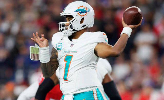 TAGOVAILOA, CASI PERFECTO Miami fue aplastante desde el inicio del juego en el que Tagovailoa pasó para 309 yardas, completó 26 de 23 envíos y conectó cuatro pases de anotación.