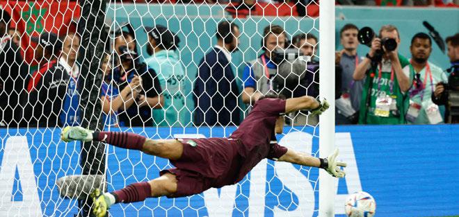 El portero de Marruecos Yassine Bounou ataja un penalti.