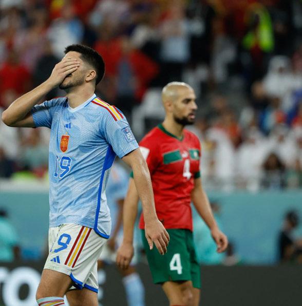 Los marroquíes lograron el pase a los cuartos de fi nal del Mundial de futbol de Qatar 2022, tras eliminar este martes a la otrora ‘Furia Roja’, en el estadio Education City de la localidad catarí de Al Rayyan y en la tanda de penaltis