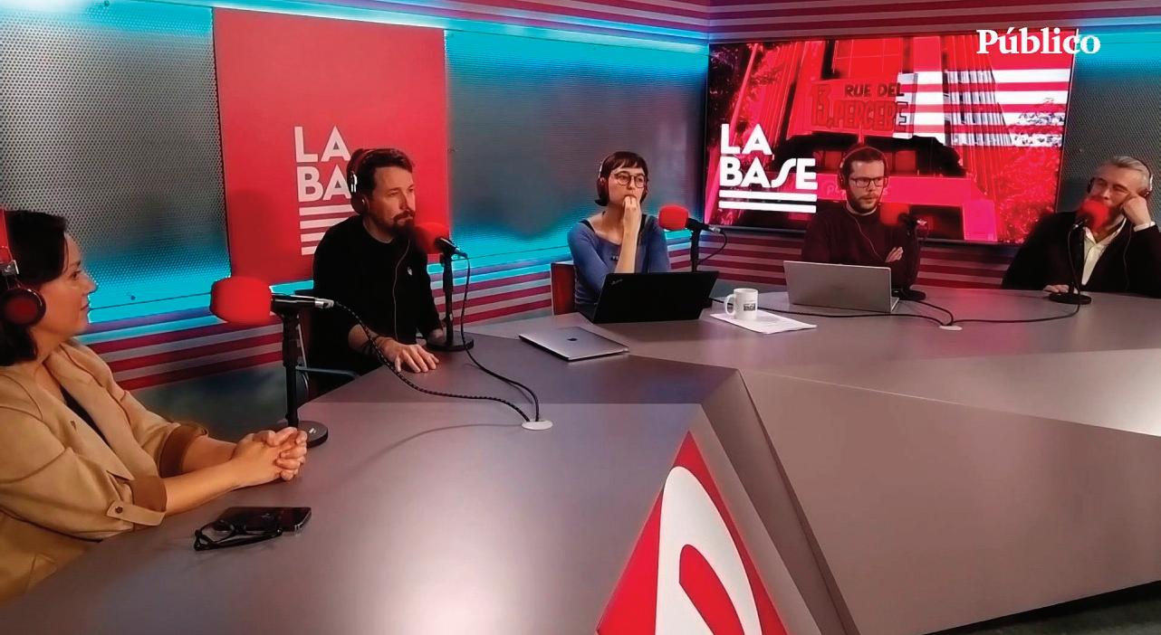 cuento del tema tratado en otros medios, después Pablo Iglesias hace una irónica introducción al título del programa casi siempre con algunas líneas editoriales que pelotean bien los otros tres colaboradores. En seguida se le da paso a un mapeo rápido y en contexto realizado por una de las integrantes de la mesa Sara Serrano que contribuye con su trabajo titulado “La base de datos”, posteriormente Manu Levin hace una recopilación del tratamiento informativo en los medios hegemónicos con un humor y un tino que evita que decaiga el ánimo entre el público y que también sirve para intercambios de opinión muy rápidos y con frecuencia agudos entre los colaboradores, “Titulares al banquillo” es el tema de la colaboración de este colega que tras su intervención le pasa la estafeta a Ina Afinogenova quién desde su “Para qué me invitan” le da un tratamiento especial al contenido del día relacionándolo con casos similares en América Latina, o a veces en otras partes del mundo. El programa concluye con la entrevista a un invitado de los colaboradores a que platiquen su conocimiento o experiencia sobre el asunto que decidieron tratar.