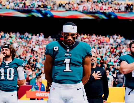 Jalen Hurts arribó a los Philadelphia Eagles seleccionado en la segunda ronda del Draft de la NFL 2020. En su año de novato Hurts comenzó cuatro juegos. En 2021 se hizo con la titularidad.