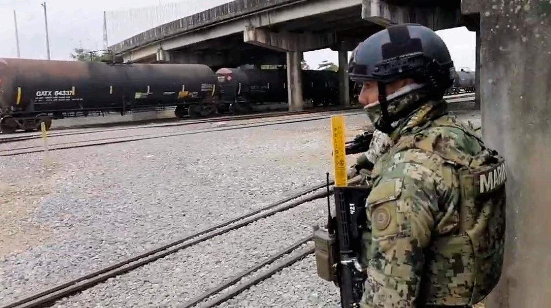 La empresa Grupo México, propietaria de Ferrosur, y los trabajadores se vieron sorprendidos la mañana de este viernes con la toma de las intalaciones por parte de elementos de la Marina.