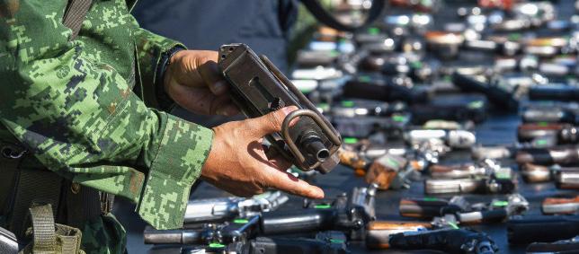 El canciller Ebrard anunció que ya se prepara una iniciativa de ley para que el tráfico ilegal de armas sea considerado como un delito grave. La iniciativa es “sugerencia de la Fiscalía General de la República, por lo que ya se prepara el proyecto”. En la imagen, destrucción de armas decomisadas por militares. PAG 7