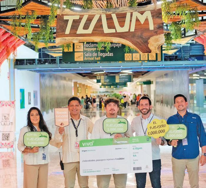 jeros en menos de un año. “Actualmente, con un promedio de 32 operaciones diarias y más de 4,150 pasajeros, el Aeropuerto Internacional de Tulum es el octavo más importante del país”, añadió Lezama.