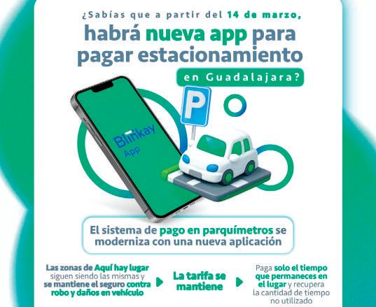 A partir del 14 de marzo los parquímetros virtuales en Guadalajara se pagarán desde la aplicación Blinkay. La aplicación Blinkay para el pago de parquímetros busca agilizar los pagos manteniedo los precios, tarifas y el seguro