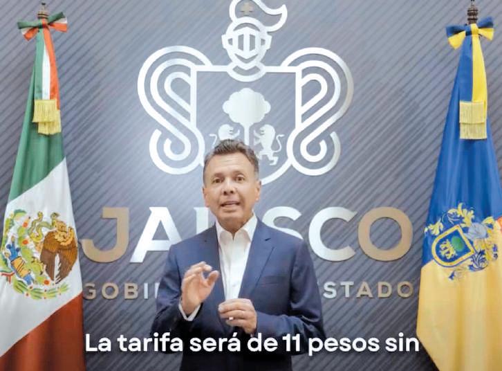 El gobernador de Jalisco, Pablo Lemus Navarro, afirmó que ningún usuario pagará la tarifa de 14 pesos y que el ajuste a 11 pesos será el único que se aplicará durante su administración.