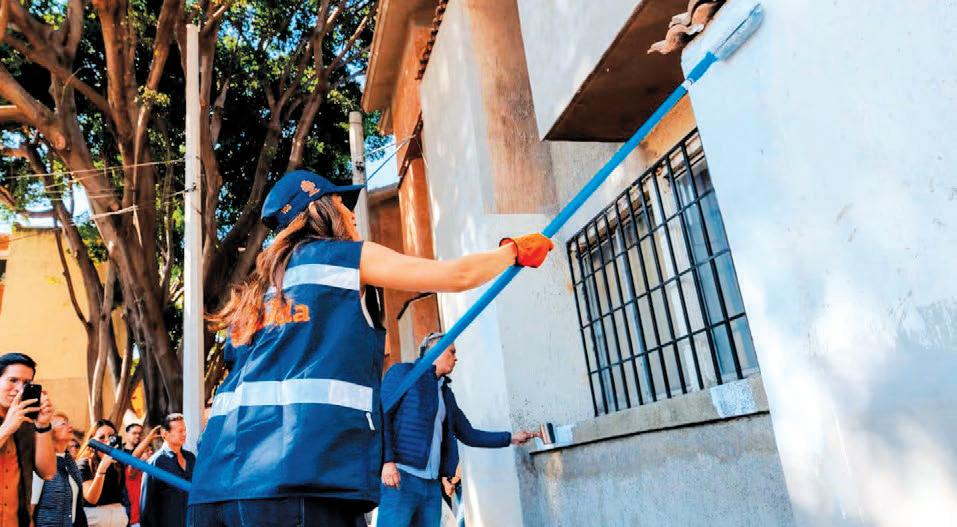 chadas, reparación de banquetas, pintura general, mantenimiento de herrería, retiro de tejas, rehabilitación de cubiertas y colocación de impermeabilizante, con el objetivo de dignificar el entorno y mejorar la calidad de vida de las familias.