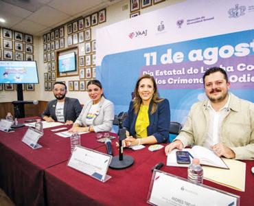 año se ha aumentado el número de atenciones, lo cual ayuda a visibilizar y atender de forma oportuna la problemática. Además, sobre el Día de Lucha contra los Crímenes de Odio señaló: “Es una fecha para tener reflexiones colectivas y construir una cultura de paz y para desarrollar nuestro proyecto de vida en libertad… Hemos logrado transformar a Jalisco en esta materia y somos referentes, pero tenemos que asegurarnos de que está agenda siga avanzando”.