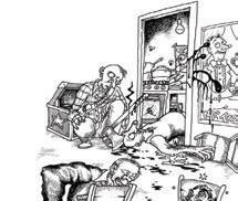 Mi especialidad es el humor negro, no realizo cartón político, para eso están los colegas especializados, bueno, como he hecho de todo durante un año fui cartonista en una revista de estudios políticos allá en el D.F. en el año 2005, pero el hecho de que no lo haga, no significa que no esté informado, ni que no me manifieste políticamente, claro que me preocupa el devenir político social de mi país y del mundo.