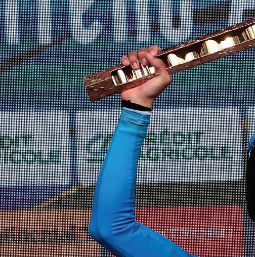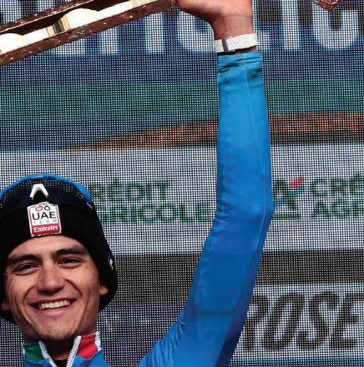 Su obra maestra llegó en la sexta etapa, con final en Camerino, donde atacó en el tercer ascenso al exigente Muro della Madonna delle Carceri (3 km al 8.8 %, con rampas de hasta 18 %) para cruzar la meta en solitario, tras un esfuerzo descomunal que dejó claro que el ‘Tridente’ ya tenía dueño.