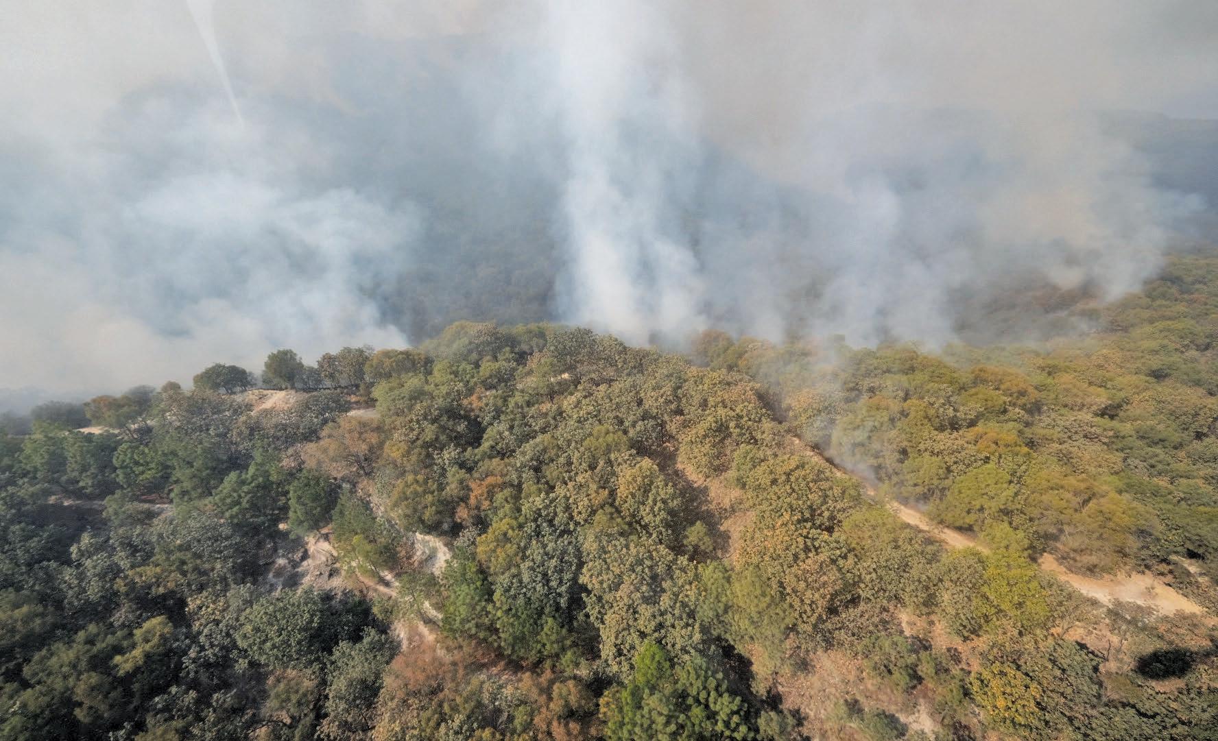 Cerca de 200 elementos de los tres niveles de Gobierno, 50 vehículos y 2 helicópteros combatieron el incendio forestal en el paraje Los Volcanes, en el Área Natural Protegida Bosque La Primavera