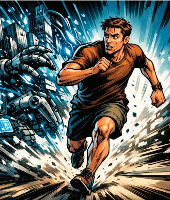 metáfora de progreso. Es reflejo defensivo. No se corre por placer ni por conquista, sino para no ser alcanzado por la obsolescencia. No quedarse atrás. No perder ritmo. No desaparecer del radar.