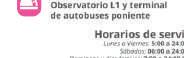 En tanto, la terminal Observatorio dispone de tres andenes, 22 cámaras de videovigilancia, 51 bocinas, elevadores, escaleras eléctricas y conexión directa con la Línea 1 del Metro mediante una pasarela.