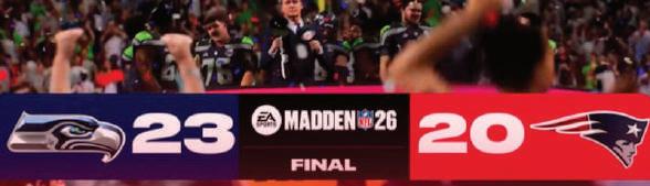De acuerdo con la simulación oficial de este año, el Madden 26 desarrolló un reñido juego para el domingo 8 de febrero, donde la corta brecha entre ambos equipos se inclinará a favor de los Seahawks de Seattle con una ventaja 23-20 sobre Patriots de New England.
