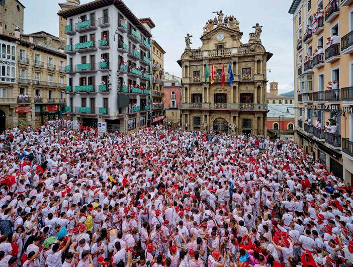 Al grito de “¡Viva San Fermín!” comenzaron las celebraciones en Pamplona, España, que se tiñe de rojo y blanco hasta el 14 de julio. Vestidos con ropa blanca y pañuelo rojo, como marca la tradición, miles de personas llenaron la plaza del Ayuntamiento de Pamplona para asistir al “chupinazo”, el lanzamiento de un potente petardo que anuncia el comienzo de las fiestas.