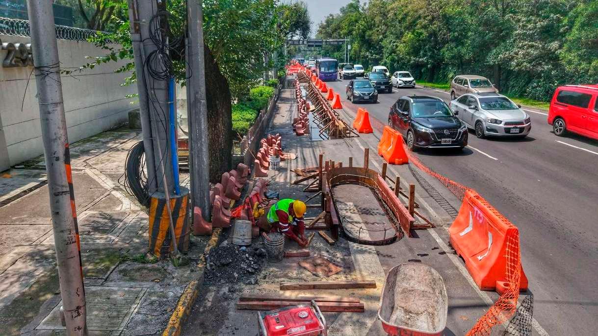 Calzada de Tlalpan, entre maquinaria, protestas y aguaceros