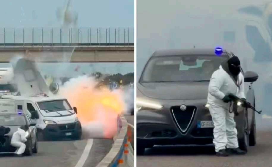 En Italia dos grupos de enmascarados embistieron e incendiaron una camioneta y un camión para bloquear el paso a las fuerzas del orden mientras detenían a dos furgones blindados, cargados de efectivo. Haciéndose pasar por agentes de policía, los delincuentes acribillaron los vehículos y volaron las puertas para sustraer el dinero. Carabineros y asaltantes se enfrentaron a tiros más tarde; sin heridos, dos fueron arrestados y las autoridades buscan ya al resto huidizo del comando. CON EXPLOSIVOS VUELAN Y ROBAN CAMIONES BLINDADOS