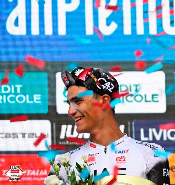 Del Toro cruzó la línea de meta con un tiempo de 4 horas, 8 minutos y 24 segundos, sacando 40 segundos de ventaja sobre el suizo Marc Hirschi (Tudor) y 44 segundos sobre el neerlandés Bauke Mollema (Lidl-Trek), quienes completaron el podio. Los equipos Bahrain Victorious y EF Education intentaron organizar la persecución, pero la falta de coordinación y el ritmo impuesto por UAE Emirates impidieron cualquier reacción efectiva. El mexicano mantuvo 33 segundos de ventaja sobre el segundo grupo y más de un minuto sobre el tercero en los últimos 10 kilómetros.