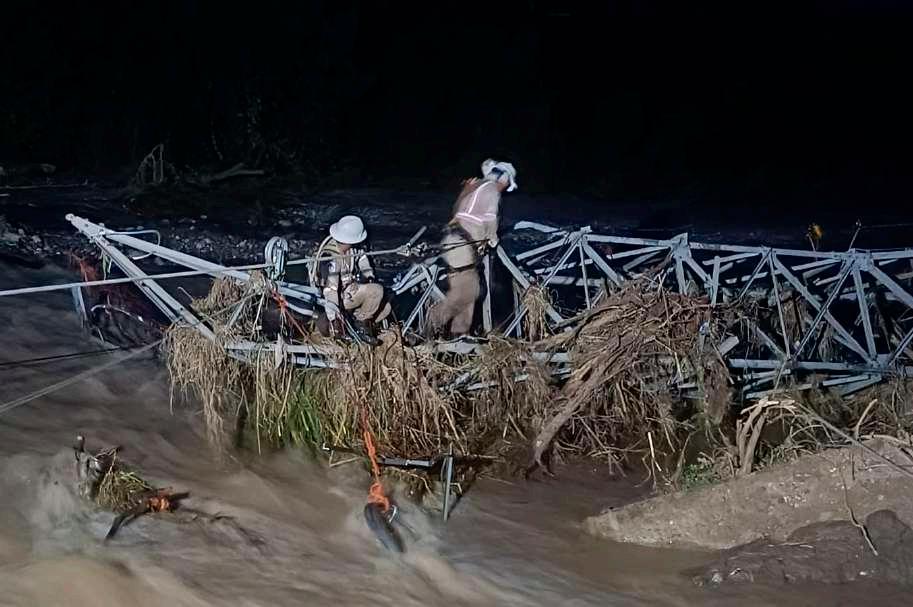 En la oscuridad y altivos frente la fuerza del agua, los linieros de la Comisión Federal de Electricidad trabajan allende el mal tiempo, por restablecer la energía en Comitán, Las Margaritas y La Trinitaria, en Chiapas.
