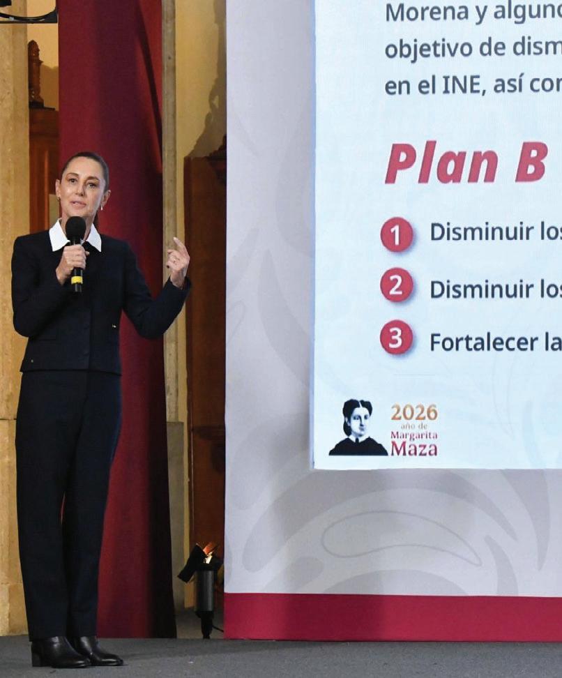 Postura. La Presidenta Claudia Sheinbaum informó que el próximo lunes 16 de marzo enviará el Plan B de la iniciativa de Reforma electoral que consiste en disminuir los privilegios en Congresos locales y en municipios, al establecer un tope máximo de los recursos que se les destinan, así como fortalecer la consulta popular.