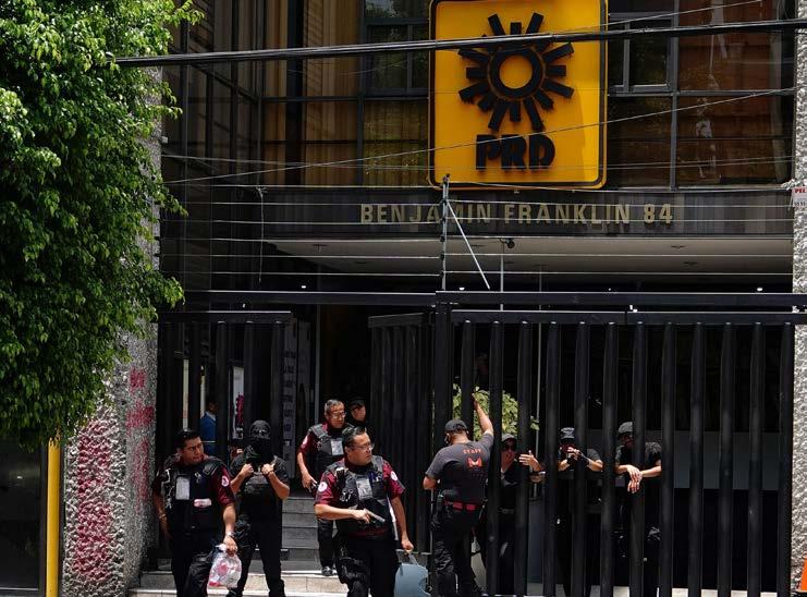 Supuestos elementos de seguridad privada resguardan el edificio que fungía como sede nacional del Partido de la Revolución Democrática (PRD), esto luego de que se notificara su pérdida de registro como partido político al no obtener el porcentaje necesario de votos para conservarlo.