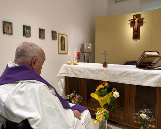Desde hace 31 días no se veía al pontífice, que ingresó por problemas respiratorios y después se le descubrió una neumonía bilateral de la que se está curando, pero aún necesita altos flujos de oxígeno con cánulas nasales y ventilación mecánica con máscara por las noches. PAG. 19
