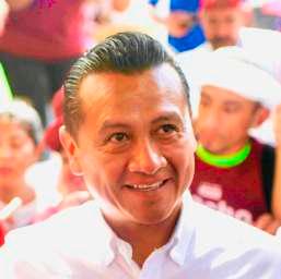El legislador morenistno oculta su intención de competir por la gubernatura de su estado en 2027 y ha comenzado campaña violando la ley electoral por actos anticipados; ha presumido en algunos encuentros ciudadanos una estampita con símbolos religiosos, monumentos y al centro las fotos de AMLO y la presidenta Sheinbaum