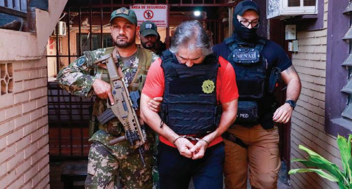 a Paraguay para trasladarlo a territorio mexicano, donde se ejecutó la orden de aprehensión vigente en su contra. El secretario de Seguridad y Protección Ciudadana, Omar García Harfuch, mediante redes sociales, agradeció la firme colaboración y apoyo del gobierno de Paraguay, que expulsó a Bermúdez por no contar con estancia regular en ese país. PAG. 7